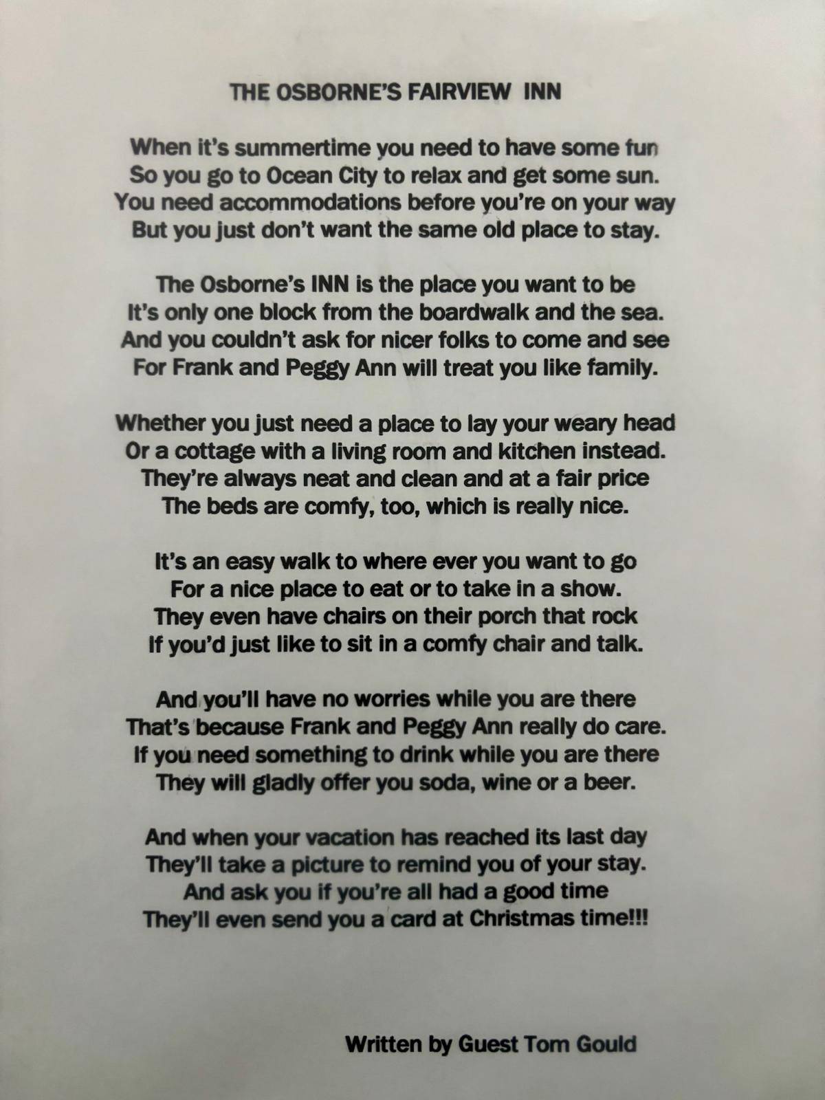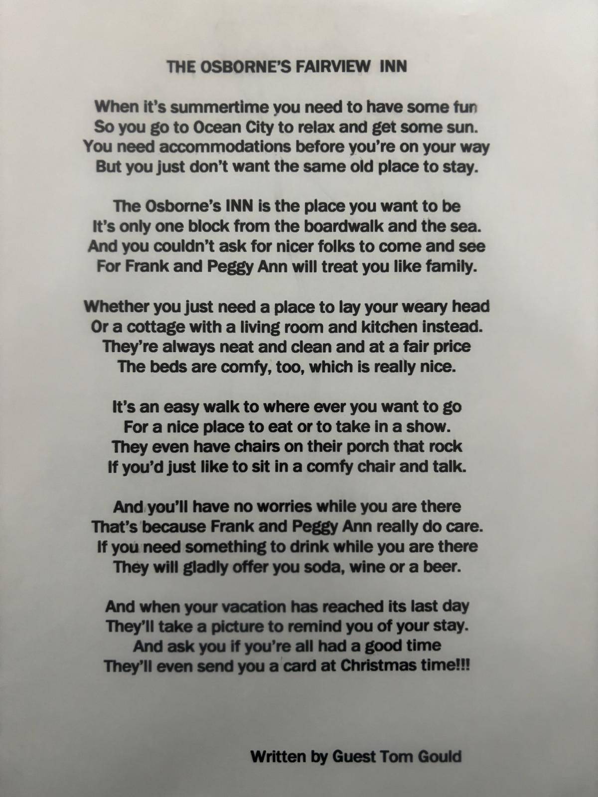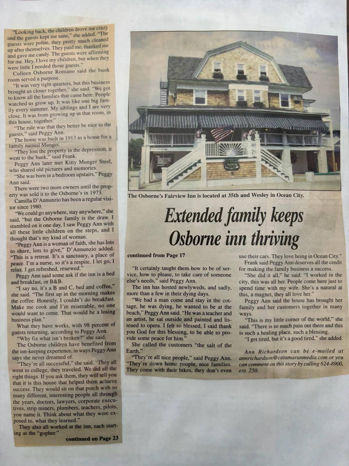 For 50 years, the Inn was lovingly guided by our parents, Frank and Peggy Ann Osborne. They poured their hearts into this house, cementing its status as a cherished Ocean City institution. This incredible half-century mark isn't just a point in time; it represents an unmatched narrative of consistency, commitment, and genuine warmth that is the very core of who we are.